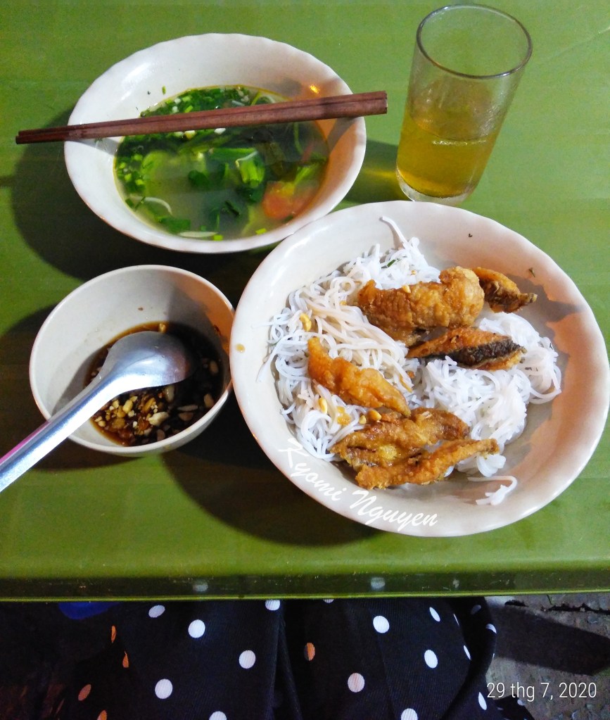 Ngoài suất này tôi còn gọi 1 bát nhỏ trứng cá ăn thêm vì hơi ít topping. Tổng “thiệt hại” cho bữa tối vừa tròn 40k (trà đá trả riêng 3k). Quán không chuyên bún cá chấm nên lúc ăn tôi bắt gặp nhiều ánh mắt tò mò của thực khách bên cạnh.